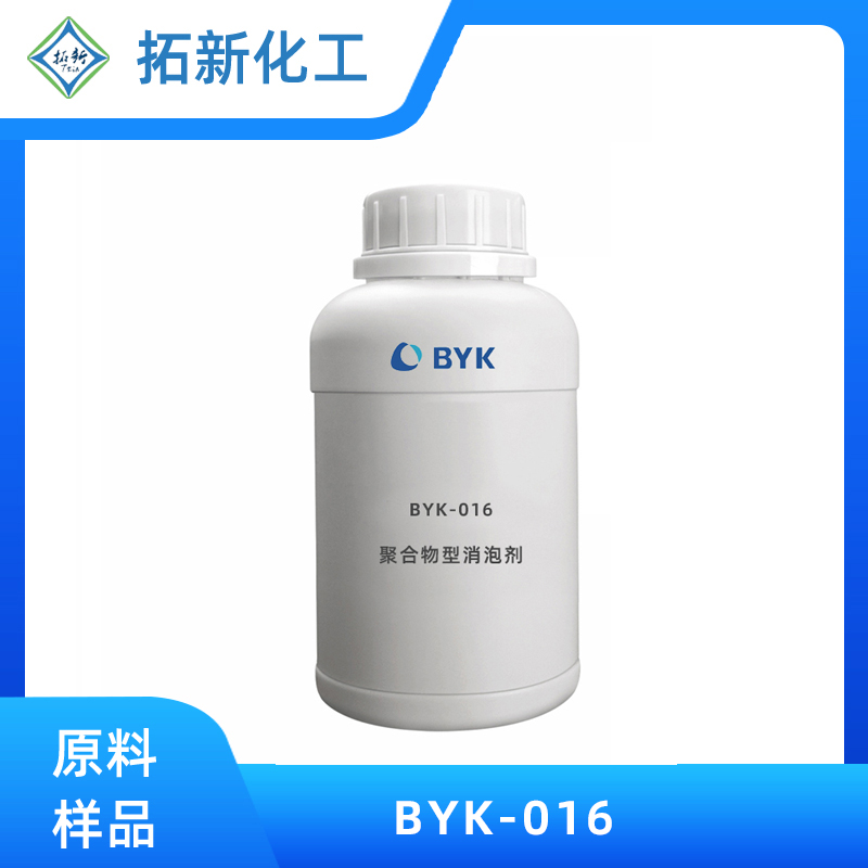 毕克消泡剂BYK-016是一款聚合物型消泡剂,不含 VOC 和有机硅,用于水性涂料、胶粘剂、印刷油墨以及罩光油。该消泡剂也可用于热塑性塑料的水下造粒。用于水性印刷油墨、罩光油以及喷墨墨水。该助剂对流动性无不良影响,不会造成印刷图案的缺陷。用于水性涂料体系,尤其适用于罐听涂料和卷材涂料。