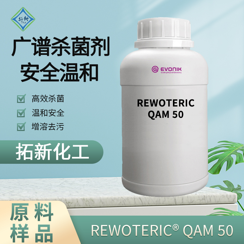 REWOTERIC® QAM 50 属于新一代增溶表面活性剂,微黄色液体活性物含量约 50%。拥有广谱安全,高效的杀菌效果,它是两性表面活性剂和阳离子表面活性剂的活性组合,特别适用于提升清洁力和提供优质的增溶特性 。这是一种在应用中对皮肤友好且可生物降解的活性成分 。